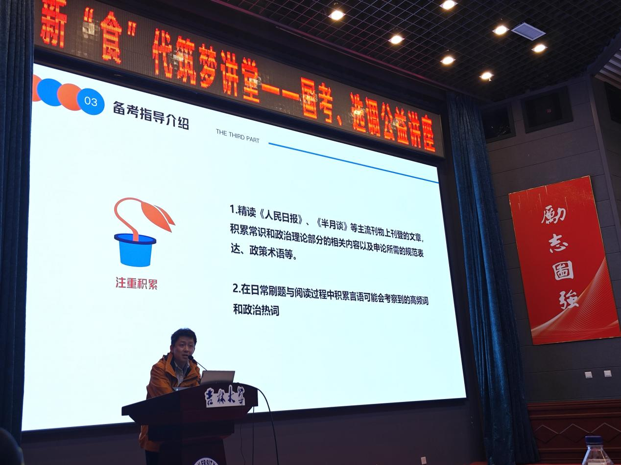 博士学生、硕士学生、本科学生党支部联合主办新“食”代筑梦讲堂——国考、选调公益讲座。本次讲座特别邀请梁文俊老师担任主讲嘉宾,党支部书记宫景玉、郝慧、30余名学生参加了活动。